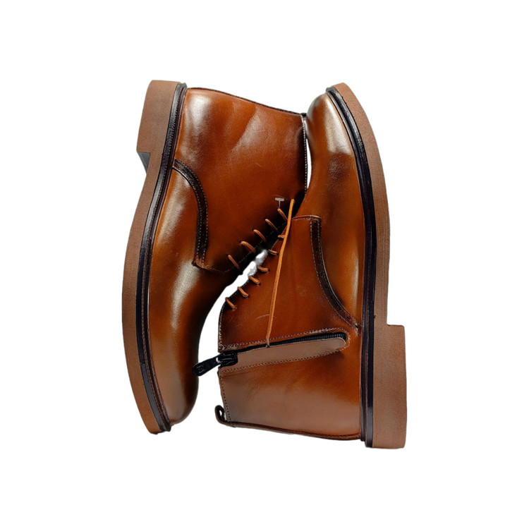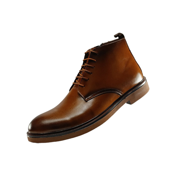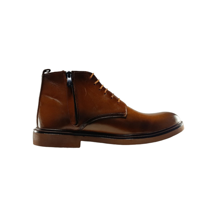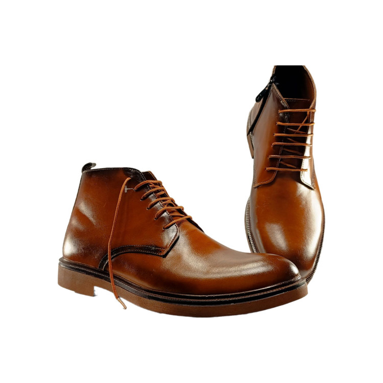 نیم بوت مردانه چرم طبیعی گاوی بندی بغل زیپ دار عسلی