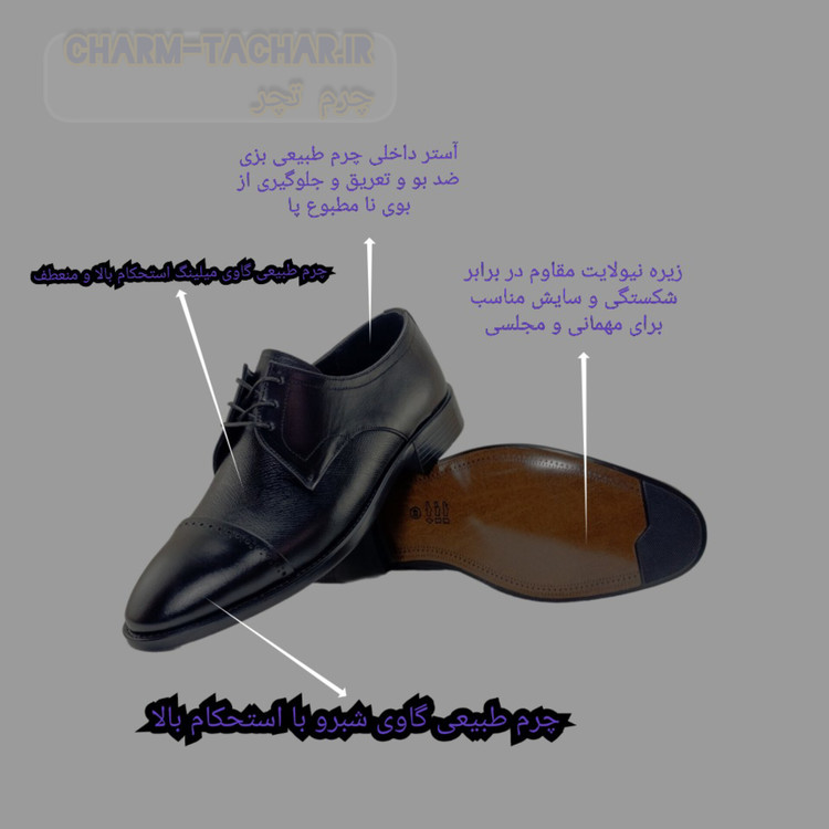 رویه ترکیبی از مرغوبترین نوع چرم طبیعی گاوی میلینگ و چرم طبیعی گاوی شبرو برای زیبایی بیشتر و انعطاف پذیری و استحکام بالا