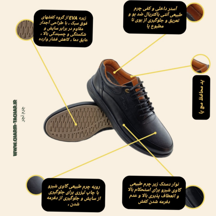 کفش طبی مردانه چرم طبیعی کلارک بندی کد si101