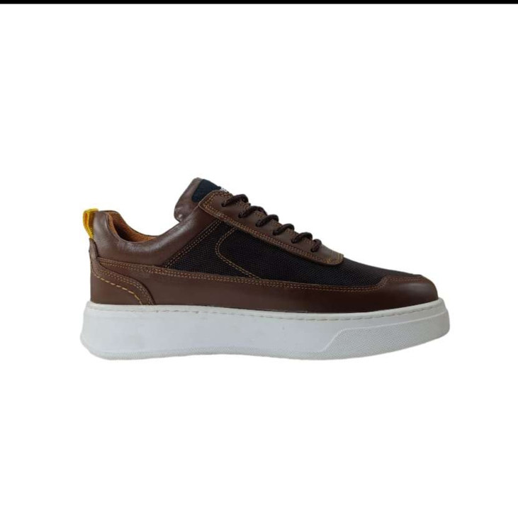 کفش کتونی چرم طبیعی – کتونی راحتی روزمره – کتونی مردانه قهوهای – کفش ونس بندی چرمی – کتونی اسپرت چرمی – کفش روزمره مردانه