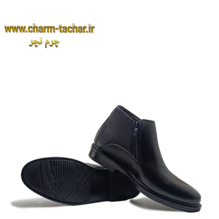 نیم بوت مردانه ساق کوتاه چهار فصل طراحی جدید و مدرن مناسب برای استفاده روزمره اداری مجلسی از بهترین متریال چرم طبیعی گاوی با زیباترین طراحی ممکن زیپ داخل و کش بغل برای سهولت در پوشش