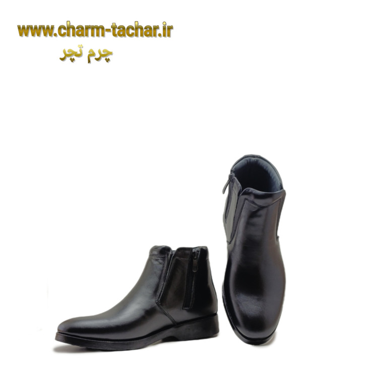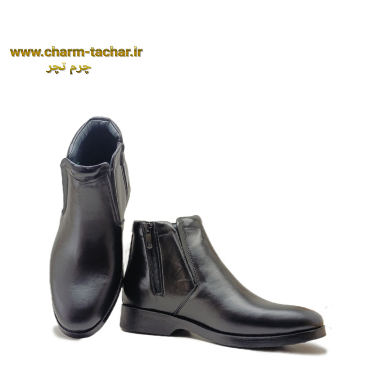 نیم بوت چلسی مردانه بدون بند بغل زیپ چرم طبیعی