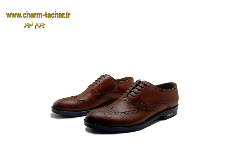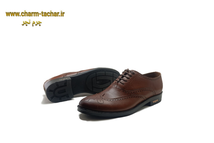 کفش رسمی بندی مردانه مدل هشت ترک رویه و آستر چرم طبیعی زیره رابر