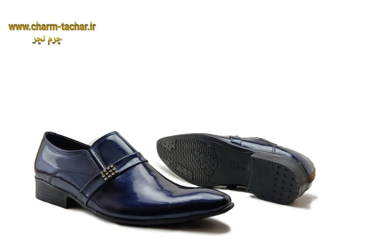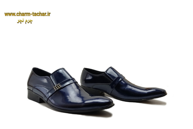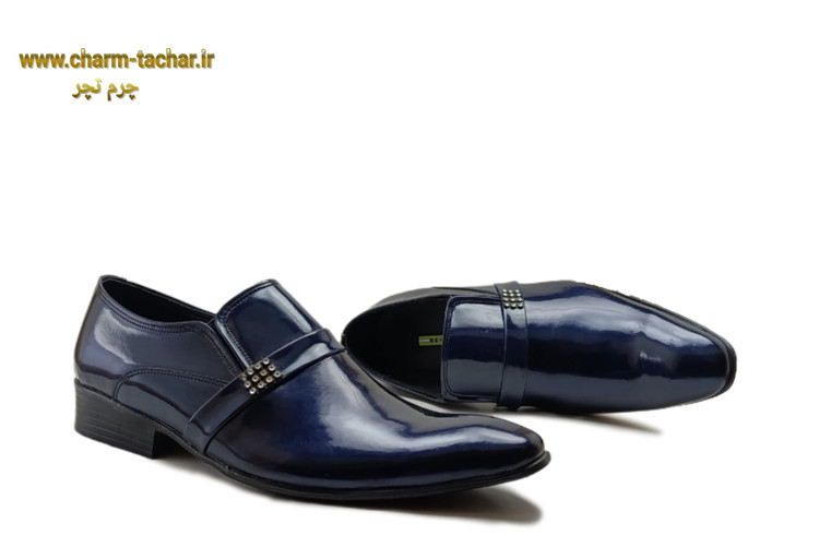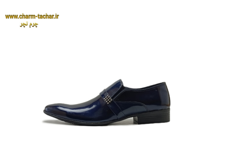کفش مجلسی ورنی سرمه‌ای چرم طبیعی مردانهsi380