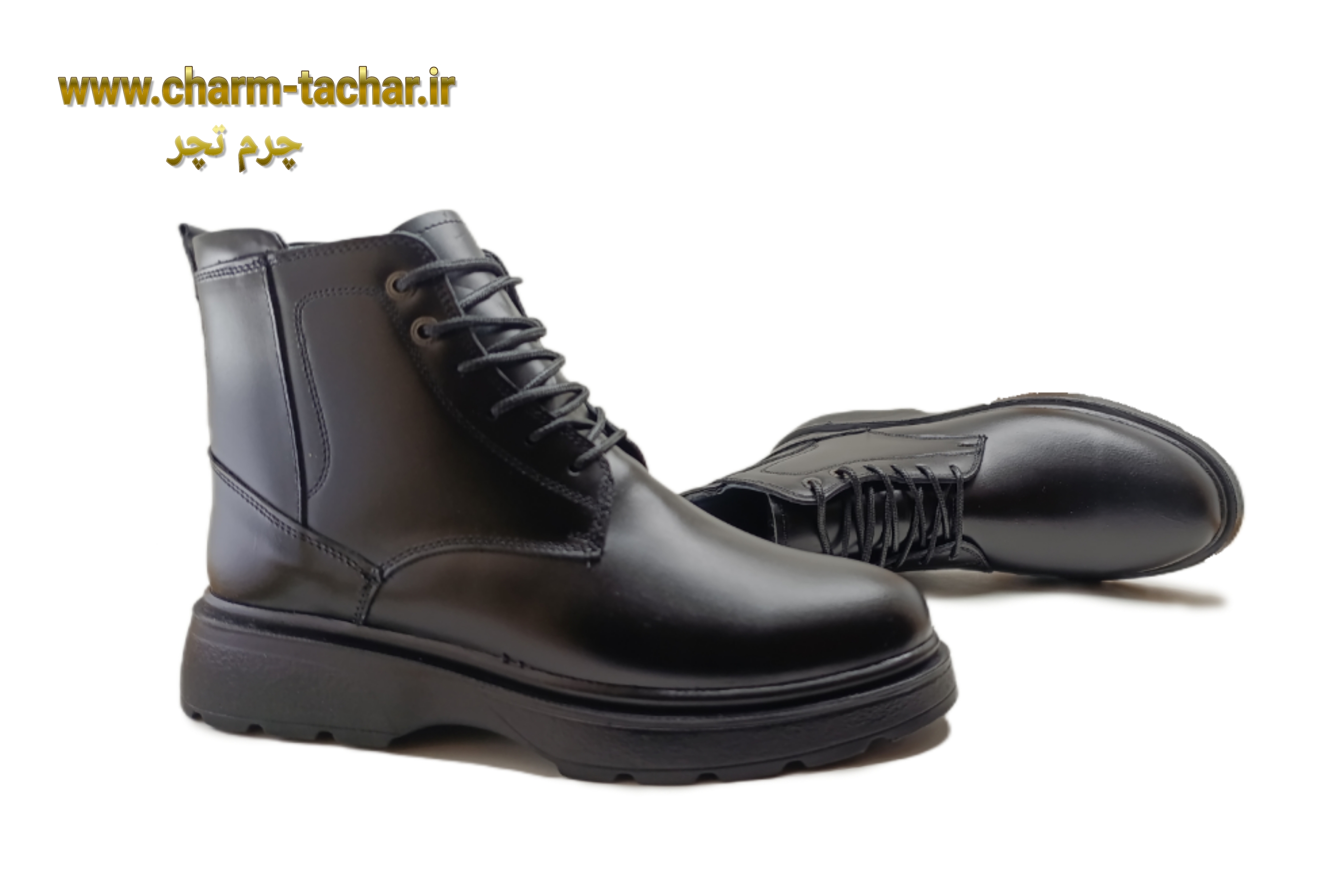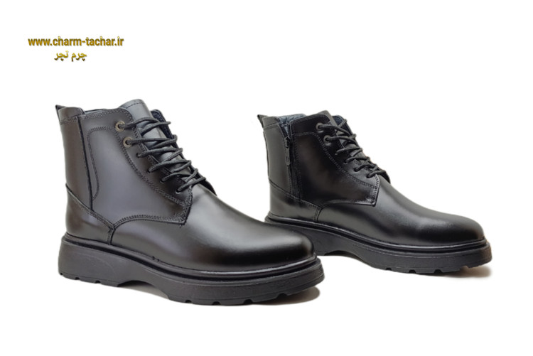 نیم بوت مردانه لوفر بندی بغل زیپدار چرم طبیعی